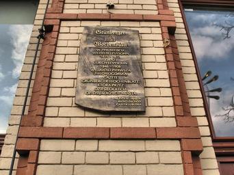 Keywords: Levysohn-wochenblatt.jpg en pl Tablica pamiątkowa w miejscu dawnej drukarni Wilhelma Levysohna w Zielonej Górze own Mohylek 2007-12 Plaques in Zielona Góra