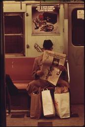 | Keywords: LEXINGTON AVENUE LINES SUBWAY PASSENGER PASSES THE TIME BY READING A NEWSPAPER. GRAFFITI DEFACES THE WALL BEHIND HIS... - NARA - 556659.tif Scope and content General notes 556659 Local identifier 412-DA-14207 Environmental Protection Agency 12/02/1970 - NARA-Author Pickerell Jim 1936- Photographer 4588217 <br /> New York New York state United States North and Central America inhabited place 4191644 40 7 -74 <br /> Still Picture Records Section Special Media Archives Services Division NWCS-S National Archives at College Park 8601 Adelphi Road College Park MD 20740-6001 04/1974 Record group Record Group 412 Records of the Environmental Protection Agency 1944 - 2006 Record group ARC 708 DOCUMERICA The Environmental Protection Agency's Program to Photographically Document Subjects of Environmental Concern compiled 1972 - 1977 Series ARC 542493 File unit File unit ARC Variant control numbers Agency-Assigned Identifier 237/47/014207<br /> NAIL Control Number NWDNS-412-DA-14207 yes Other versions <gallery> File LEXINGTON_AVENUE_LINES_SUBWAY_PASSENGER_PASSES_THE_TIME_BY_READING_A_NEWSPAPER _GRAFFITI_DEFACES_THE_WALL_BEHIND_HIS _-_NARA_-_556659 tif tif File LEXINGTON_AVENUE_LINES_SUBWAY_PASSENGER_PASSES_THE_TIME_BY_READING_A_NEWSPAPER _GRAFFITI_DEFACES_THE_WALL_BEHIND_HIS _-_NARA_-_556659 jpg jpg </gallery> NARA-cooperation PD-USGov Newspaper readers NARA TIF images with categorized JPGs |