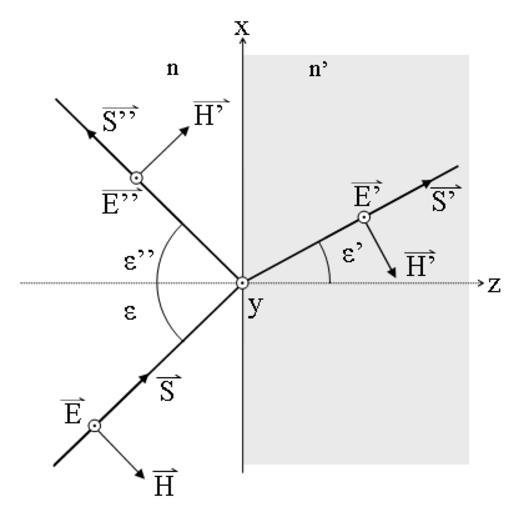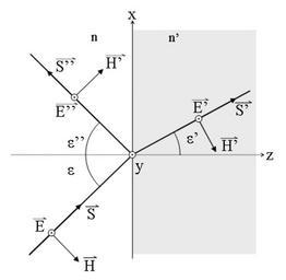 Keywords: Ley Fresnel 03.png representación de difracción y reflexión E <nowiki>_ _</nowiki> al plano de incidencia Ley de Fresnel Fresnel Law own 2008-04-22 Ignacio González Tapia Fresnel equations diagrams