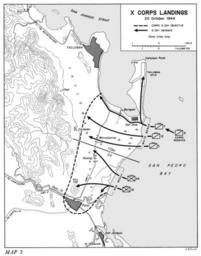 | Keywords: Leyte Landing, X Corps - 20 October, 1944.jpg en Shows location of the Leyte Northern Attack Force X Corps Red and White landing beaches 1993 Leyte The Return to the Philippines U S Army in WW II The War in the Pacific M Hamlin Cannon PD-USGov Uploaded with UploadWizard Battle of Leyte Maps of World War II Maps of Leyte |