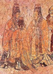 | Keywords: Li Xian's tomb, ambassadors2.jpg From Paludan's source In this mural foreign ambassadors are being received at court The two elegantly clad figures on the right are from Korea the bare-headed large-nosed figure in the centre is an envoy from the west Mural from Li Xian's tomb Qianling Shaanxi 706 Paludan Ann 1998 Chronicle of the Chinese Emperors the Reign-by-Reign Record of the Rulers of Imperial China London Thames Hudson Ltd ISBN 0500050902 Page 98 706 AD Unknown Tang-era tomb artist PD-art paintings of the Tang Dynasty Prince Zhanghuai's tomb International relations of the Tang Dynasty Uploaded with UploadWizard |