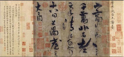 | Keywords: Libai shangyangtai.jpg Artwork 上阳台帖 en Shàng yángtái tiě 上阳台帖 Going Up To Sun Terrace On the Balcony fr Shàng yángtái tiě 上阳台帖 carte calligraphiée « Sur le Balcon » zh 中国唐 诗人 白手书 迹 上阳台帖 ,现藏于北京故宫博物院 Tang Dynasty poet Li Bai the only surviving example of Li Bai's own calligraphy is now housed at the Palace Museum in Beijing China <small>http //www flashpointmag com/libai10 htm</small> Lǐ Bái 白 de la dynastie Tang C'est l'unique exemplaire d'un poème authentifié comme calligraphié par Li Bai il est conservé au Musée du palais de Pékin http //www w3d cn/allnews asp id 875 sortid1 5 sortid2 0 701 762 PD-old-100 Li Bai Calligraphy in the Palace Museum |