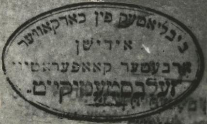 | Keywords: text circle round writing monochrome In the years following the end of the First World War and the Russian Revolution the city of Kharkiv – in Ukraine – became home to a large and vibrant Jewish community; indeed, the Jewish population of Kharkiv swelled to well over 100,000 in the years preceding the start of the Second World War. As the capital of the Ukrainian SSR (from 1919 to 1934) Kharkiv was not only a site of important industry but also a hub for culture, education and political activity. For years Kharkiv was a major center for Zionist political organizing, but with the consolidation of control by the Communist party political life was increasingly controlled. Due to its large Jewish population, Kharkiv was home to a thriving Yiddish culture though it largely emphasized secular socialist values as opposed to religious or Zionist ideologies. This book stamp – from the library of the Kharkhaver Jewish Workers’ Cooperate, touting the importance of self-education – is a record of the intersection of the Jewish community with communist politics in the city. During World War II Kharkiv was the site of many fierce battles as control of the city went back and forth between the Nazis and the Soviets. Though many of Kharkiv’s Jews fled before the advance of the Nazi forces, those who remained were forced into ghettoes and massacred. Stamps such as this one bear testament to the once vibrant Jewish community that was decimated during the Second World War. This book stamp is from a book looted by the Nazis and sorted by Colonel Seymour Pomrenze, one of “the Monuments Men,” at the Offenbach Archival Depot. There are two scrapbooks of archival markings from the books sorted at the Offenbach Depot in the Seymour Pomrenze Collection held by the American Jewish Historical Society (Call number P-933) There is a finding aid for the collection here The digitized scrapbooks are available here and here. For more information on this project check the Center’s blog: 16thstreet.tumblr.com/tagged/Offenbach-Depot Dr. Mitch Fraas, Acting Director of the Digital Humanities Forum at the University of Pennsylvania Libraries' Special Collections Center is working on a similar project for the German book stamps based on NARA microfilm of the volumes the American Jewish Historical Society currently holds. See viewshare.org/views/mfraas/offenbach-bookplates/ The Center for Jewish History would like to acknowledge the following: The American Jewish Historical Society, who graciously allowed the use of their archival materials and digital content; Mitch Fraas, Acting Director of the Digital Humanities Forum at the University of Pennsylvania Libraries' Special Collections Center, for his data and technical assistance in this project; David Rosenberg, Senior Manager for Communications, and Melanie Meyers, Senior Reference Services Librarian for Special Collections, for managing and creating the digital map; as well as Reference Services Librarian Zachary Loeb and Reference Services Assistant Ilya Slavutskiy for their work on translating and mapping. For copyright information, click here In the years following the end of the First World War and the Russian Revolution the city of Kharkiv – in Ukraine – became home to a large and vibrant Jewish community; indeed, the Jewish population of Kharkiv swelled to well over 100,000 in the years preceding the start of the Second World War. As the capital of the Ukrainian SSR (from 1919 to 1934) Kharkiv was not only a site of important industry but also a hub for culture, education and political activity. For years Kharkiv was a major center for Zionist political organizing, but with the consolidation of control by the Communist party political life was increasingly controlled. Due to its large Jewish population, Kharkiv was home to a thriving Yiddish culture though it largely emphasized secular socialist values as opposed to religious or Zionist ideologies. This book stamp – from the library of the Kharkhaver Jewish Workers’ Cooperate, touting the importance of self-education – is a record of the intersection of the Jewish community with communist politics in the city. During World War II Kharkiv was the site of many fierce battles as control of the city went back and forth between the Nazis and the Soviets. Though many of Kharkiv’s Jews fled before the advance of the Nazi forces, those who remained were forced into ghettoes and massacred. Stamps such as this one bear testament to the once vibrant Jewish community that was decimated during the Second World War. This book stamp is from a book looted by the Nazis and sorted by Colonel Seymour Pomrenze, one of “the Monuments Men,” at the Offenbach Archival Depot. There are two scrapbooks of archival markings from the books sorted at the Offenbach Depot in the Seymour Pomrenze Collection held by the American Jewish Historical Society (Call number P-933) There is a finding aid for the collection here The digitized scrapbooks are available here and here. For more information on this project check the Center’s blog: 16thstreet.tumblr.com/tagged/Offenbach-Depot Dr. Mitch Fraas, Acting Director of the Digital Humanities Forum at the University of Pennsylvania Libraries' Special Collections Center is working on a similar project for the German book stamps based on NARA microfilm of the volumes the American Jewish Historical Society currently holds. See viewshare.org/views/mfraas/offenbach-bookplates/ The Center for Jewish History would like to acknowledge the following: The American Jewish Historical Society, who graciously allowed the use of their archival materials and digital content; Mitch Fraas, Acting Director of the Digital Humanities Forum at the University of Pennsylvania Libraries' Special Collections Center, for his data and technical assistance in this project; David Rosenberg, Senior Manager for Communications, and Melanie Meyers, Senior Reference Services Librarian for Special 
