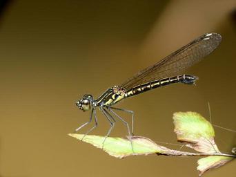 | Keywords: Libellago lineata female 2 by kadavoor.jpg Libellago lineata River Heliodor Stream Heliodor Yellow-lined Gems is a small black and yellow damselfly with black tipped transparent wing; confined to hill streams and rivers of forested landscapes Frequently sits in emergent water plants and overhanging bushes Their preferred home is along the banks of rivers The fully adult male has black and yellow markings along the thorax and abdomen It has more black when fully matured It also has white markings on the legs The biggest difference though is that it develops black marks on the tops of the wings that make it look really distinctive A young male is similar to the adult but doesn't yet have the black markings on the wings and there is less black on the abdomen The female is similar to the sub-adult male except the abdomen is much more robust and the markings on the abdomen are slightly different Eyes of female are brown above grey below Thorax is similar to male and markings more extensive and dull Legs are yellow femora lined extensively with brown Wings are transparent with amber tint Wing spots are creamy white; present in all wings Abdomen is yellow with black markings The first segment has a large square spot above The segments 2-8 have a broad black patch above This is bisected by a narrow yellow line which extend to the 9th segment and the last segment is black Female lays eggs on partially submerged decaying wood Taken at Kadavoor Kerala India Note This is Libellago indica Fraser 1928; now considered as a separate species 2010-10-16 14 49 14 own User Jkadavoor/author User Jkadavoor/cc0 2010 Chlorocyphidae Kadavoor <gallery> File Libellago lineata male at Kadavoor jpg Male File Libellago lineata at Kadavoor jpg Male File Libellago lineata by kadavoor JPG Male File Libellago lineata female 3 by kadavoor jpg Female newly emerged </gallery> User Jkadavoor/credit-cc0 2010 10 0 10 73 N 76 44 0 52 E Uploaded with UploadWizard Libellago lineata Insects of Kadavoor Images by Jkadavoor Jee |