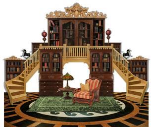 Keywords: library librarian fantasy books bookshelves bookcases wood furniture reading read learning knowledge nook education academic literature study bookshelf