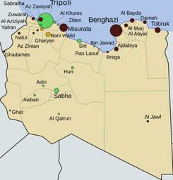 | Keywords: Libyan Uprising(2011-03-08).svg Libyan uprising en Libyan_Uprising svg 2011-03-08 09 40 UTC Libyan_Uprising svg Rafy en User Interchange88 derivative work War dog <span class signature-talk >talk</span> Other versions/Libyan Uprising Changed Bin Jawad status Libyan_Uprising svg Cc-zero Original upload log This image is a derivative work of the following images File Libyan_Uprising svg licensed with Cc-zero 2011-03-07T11 01 33Z Giornorosso 339x354 51301 Bytes <nowiki>Some city names changed</nowiki> 2011-03-06T16 18 47Z U5K0 339x354 51247 Bytes <nowiki>misrata successfully defended by rebels</nowiki> 2011-03-06T14 32 47Z U5K0 339x354 51213 Bytes <nowiki>change as per timeline article on english wikipedia</nowiki> 2011-03-06T10 57 26Z U5K0 339x354 51178 Bytes <nowiki>changes as per http //www libyafeb17 com/</nowiki> 2011-03-05T22 31 38Z Magog the Ogre 339x354 52433 Bytes <nowiki> The source by no means says Sirt was taken by opposition - it makes only vague references to clashes - changing to yellow although IMHO it should be green until there is more confirmation</nowiki> 2011-03-05T22 29 43Z Yoman82 339x354 53053 Bytes <nowiki>I think I finally got it</nowiki> 2011-03-05T22 20 50Z Yoman82 339x354 52395 Bytes <nowiki>Got it this time I think citation http //blogs aljazeera net/live/africa/live-blog-libya-march-5 Live blog Libya Al Jazeera Africa Live 2011-3-5 </nowiki> 2011-03-05T22 09 49Z U5K0 339x354 51091 Bytes <nowiki>Reverted to version as of 15 36 5 March 2011----- Reference </nowiki> 2011-03-05T22 09 35Z Magog the Ogre 339x354 51091 Bytes <nowiki>Reverted to version as of 15 36 5 March 2011 - ya done goofed</nowiki> 2011-03-05T22 07 03Z Yoman82 512x535 331590 Bytes <nowiki>Updated to include capture of Sirt by opposition</nowiki> 2011-03-05T15 36 31Z U5K0 339x354 51091 Bytes <nowiki>Bin Jawad</nowiki> 2011-03-04T20 41 38Z U5K0 339x354 50417 Bytes <nowiki>ras lanuf lierated</nowiki> 2011-03-04T14 50 36Z Rafy 339x354 50039 Bytes <nowiki>update</nowiki> 2011-03-04T13 41 03Z Rafy 339x354 49174 Bytes <nowiki>Ras Lanuf and Zawia under attack</nowiki> 2011-03-03T22 45 25Z Rafy 339x354 48809 Bytes <nowiki>Dark Border</nowiki> 2011-03-03T20 29 00Z Rafy 339x354 41068 Bytes <nowiki>changed to beige as it should improve the contrast removed Tajura it is effectively a suberb of Tripoli Added Al Abya </nowiki> 2011-03-02T22 29 03Z Rafy 339x354 38414 Bytes <nowiki>oops</nowiki> 2011-03-02T22 11 41Z Rafy 339x354 35936 Bytes <nowiki>uploaded wrong one</nowiki> 2011-03-02T22 10 02Z Rafy 339x354 35936 Bytes <nowiki>More accurate city scales Updates </nowiki> 2011-03-02T20 57 26Z Magog the Ogre 339x354 36812 Bytes <nowiki> Brega Adjabiya and Bani Walid per the talk page</nowiki> 2011-03-02T11 12 39Z Rafy 339x354 35936 Bytes <nowiki>Colour tweaks Gharyan Sebrata Brega and Ajdabia under attack</nowiki> 2011-03-02T10 32 38Z Transparent 6lue 339x354 32868 Bytes <nowiki>Reverted to version as of 19 39 1 March 2011 it's called Tripoli </nowiki> 2011-03-02T10 18 48Z Giornorosso 339x354 32861 Bytes <nowiki>Ajdabiya contested</nowiki> 2011-03-02T10 17 00Z Giornorosso 339x354 32861 Bytes <nowiki>Gharyan captured by Ghaddafi</nowiki> 2011-03-01T19 39 14Z U5K0 339x354 32868 Bytes <nowiki>misrata in rebbel hands still </nowiki> 2011-03-01T19 28 17Z U5K0 339x354 32810 Bytes <nowiki>zawiya in rebel hands after repelling attacks</nowiki> 2011-03-01T12 21 03Z Rafy 339x354 32406 Bytes <nowiki>Black border makes light green more visible over a grey background </nowiki> 2011-03-01T12 04 56Z Rafy 339x354 31875 Bytes <nowiki>corrected position of khums and zliten added a better green as per discussion added grey border do distinguish overlapping cities aziziya and tripoli for example </nowiki> 2011-03-01T07 38 13Z Magog the Ogre 339x354 34210 Bytes <nowiki> kill red border per complaint on talk page</nowiki> 2011-03-01T03 51 03Z Rafy 339x354 33791 Bytes <nowiki>colours improve scales based on http //www world-gazetteer com/wg php x 1298950805 men glay lng en des gamelan geo -133 srt dpnn col abcdefghimoq msz 1500 this source</nowiki> 2011-03-01T03 20 06Z JasonAQuest 339x354 27052 Bytes <nowiki>restore city sizes</nowiki> 2011-03-01T02 26 10Z Rafy 339x354 31644 Bytes <nowiki>Tripoli to green and and Misrata and Zawia to yellow</nowiki> 2011-03-01T02 16 10Z Rafy 339x354 32189 Bytes <nowiki>Colourblind friendly updated situation Ghadamis and Bani Walid were never under opposition control </nowiki> 2011-02-28T20 46 05Z Gryffindor 339x354 28395 Bytes <nowiki>the large dots make reading the city names difficult also some are too small</nowiki> 2011-02-28T19 30 49Z Interchange88 339x354 27375 Bytes <nowiki>Reverted to version as of 03 36 28 February 2011 drive-by edit no reasons no discussion</nowiki> 2011-02-28T15 13 46Z Gryffindor 339x354 28395 Bytes <nowiki>Reverted to version as of 20 15 27 February 2011</nowiki> 2011-02-28T03 36 14Z JasonAQuest 339x354 27375 Bytes <nowiki>scale cities according to size</nowiki> 2011-02-27T20 15 42Z JasonAQuest 339x354 28395 Bytes <nowiki>neutral background</nowiki> 2011-02-27T17 36 21Z Rafy 339x354 54770 Bytes <nowiki>Using one colour for the map as per discussion</nowiki> 2011-02-27T17 06 02Z Rafy 339x354 54768 Bytes <nowiki>Colour tweaks Al Aziziya still controlled by Gaddafi </nowiki> 2011-02-27T14 48 05Z U5K0 338x354 57558 Bytes <nowiki>Al Zawiya liberated as per BBC Al Jazeera see article talk page </nowiki> 2011-02-27T14 22 17Z Rafy 338x354 56608 Bytes <nowiki>Bigger bullets</nowiki> 2011-02-27T11 00 26Z Rafy 387x354 58251 Bytes <nowiki>tweaks</nowiki> 2011-02-27T01 56 45Z Rafy 387x354 66921 Bytes <nowiki>corrections</nowiki> 2011-02-27T01 50 06Z Rafy 387x354 133950 Bytes <nowiki>saved as plain</nowiki> 2011-02-27T01 47 44Z Rafy 387x354 154560 Bytes <nowiki> en Situation as of 26/2/2011 own Rafy 2011-02-27 Libyan uprising</nowiki> Uploaded with derivativeFX Maps of the 2011 Libyan civil war SVG maps in English |