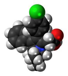 | Keywords: Licofelone molecule spacefill.png Space-filling model of the licofelone molecule a potential treatment for osteoarthritis Color code 505050 Carbon C black<br> F0F0F0 Hydrogen H white<br> F51E1E Oxygen O red<br> 3C50FA Nitrogen N blue<br> 14F014 Chlorine Cl green<br> 2011-08-02 own DS Visualizer Jynto talk Ball-and-stick version cc-zero Images by Jynto Analgesics Azoles Monochlorobenzenes Carboxylic acids | ||||