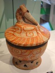 | Keywords: Lidded vessel depicting cormorant, vessel 2 of 2, Maya, Maya lowlands region, Early Classic Period, 250-600 AD, ceramic - Royal Ontario Museum - DSC04504.JPG en Exhibit in the Royal Ontario Museum Toronto Ontario Canada This work is old enough so that it is in the public domain Photography was permitted in the museum without restriction 2013-10-08 16 36 44 own Daderot cc-zero Maya ceramics in the Royal Ontario Museum Uploaded with UploadWizard | ||||