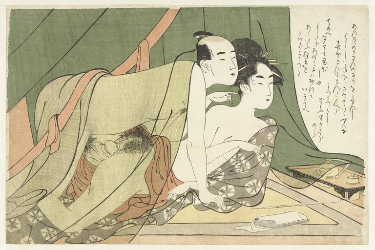 | Keywords: Liefdespaar onder muskietennet-Rijksmuseum RP-P-2007-236.jpeg  accession number RP-P-2007-236 Chôkyôsai Eiri credit line GWToolset Rijksmuseum nl Man en vrouw kijkend naar rechts vanonder een groen muskietennet bedrijven de liefde Rookgerei en tissues op de vloer Label Line Chôkyôsai Eiri ca 1789 - ca 1801 kleurenhoutsnede; lijnblok in zwart met kleurblokken Collection prenten; Japan collectie en Man and woman looking to the right from under green mosquito net making love Smoking paraphernalia and tissues on the floor blad Height mm 256 blad Width mm 388 exhibition history 2008-2008 Kunst op papier Rijksmuseum Amsterdam Amsterdam 2007-2007 Zomertentoonstelling 2007 CODA Cultuur onder Dak Apeldoorn Apeldoorn Institution Rijksmuseum paper object history object type prent PD-US PD-old Data and photography rights All data and all images made available through the API are either in the public domain or are subject to a CC0 license https //www rijksmuseum nl/en/api/terms-and-conditions-of-use cc-zero place of creation Japan http //www rijksmuseum nl/collectie/RP-P-2007-236 http //hdl handle net/10934/RM0001 COLLECT 440923 handle Liefdespaar onder muskietennet Uploaded with GWToolset Rijksmuseum RP-P-2007-236 http //www rijksmuseum nl/media/assets/RP-P-2007-236 Images uploaded by Fæ Japanese 18th-century prints in the Rijksmuseum Amsterdam Images from the Rijksmuseum Japanese 19th-century prints in the Rijksmuseum Amsterdam Heterosexual sex in art |