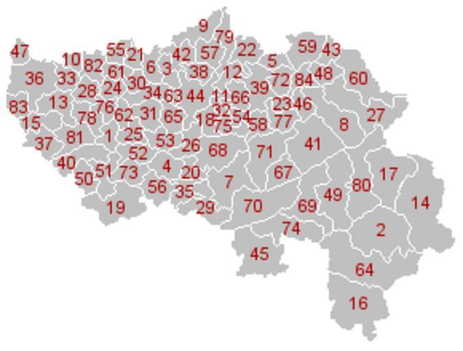 | Keywords: LiègeGemeenten2.png locator map LennartBolks NL; kaart gemaakt door w nl gebruiker LennartBolks in het publieke domein geplaatst <TABLE><TR><TD valign top > 1 Amay<br> 2 Amel<br> 3 Ans<br> 4 Anthisnes<br> 5 Aubel<br> 6 Awans<br> 7 Aywaille<br> 8 Baelen<br> 9 Bassenge<br> 10 Berloz<br> 11 Beyne-Heusay<br> 12 Blégny<br> 13 Braives<br> 14 Büllingen<br> 15 Burdinne<br> 16 Burg-Reuland<br> 17 Bütgenbach<br> 18 Chaudfontaine<br> 19 Clavier<br> 20 Comblain-au-Pont<br> 21 Crisnée<br> 22 Dalhem<br> 23 Dison<br> 24 Donceel<br> 25 Engis<br> 26 Esneux<br> 27 Eupen<br> 28 Faimes<br> 29 Ferrières<br> 30 Fexhe-le-Haut-Clocher<br> 31 Flémalle<br> 32 Fléron<br> 33 Geer<br> 34 Grâce-Hollogne<br> 35 Hamoir<br> 36 Hannut<br> 37 Héron<br> 38 Herstal<br> 39 Herve<br> 40 Huy<br> 41 Jalhay<br> 42 Juprelle<br> </TD><TD valign top > 43 Kelmis<br> 44 Liège<br> 45 Lierneux<br> 46 Limbourg<br> 47 Lincent<br> 48 Lontzen<br> 49 Malmedy<br> 50 Marchin<br> 51 Modave<br> 52 Nandrin<br> 53 Neupré<br> 54 Olne<br> 55 Oreye<br> 56 Ouffet<br> 57 Oupeye<br> 58 Pepinster<br> 59 Plombières<br> 60 Raeren<br> 61 Remicourt<br> 62 Saint-Georges-sur-Meuse<br> 63 Saint-Nicolas<br> 64 Sankt-Vith<br> 65 Seraing<br> 66 Soumagne<br> 67 Spa<br> 68 Sprimont<br> 69 Stavelot<br> 70 Stoumont<br> 71 Theux<br> 72 Thimister-Clermont<br> 73 Tinlot<br> 74 Trois-Ponts<br> 75 Trooz<br> 76 Verlaine<br> 77 Verviers<br> 78 Villers-le-Bouillet<br> 79 Visé<br> 80 Waimes<br> 81 Wanze<br> 82 Waremme<br> 83 Wasseiges<br> 84 Welkenraedt<br> </TD></TR></TABLE> Locator maps of municipalities of Liège province |