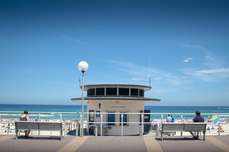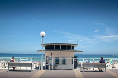 Keywords: lifeguard beach sand ocean sea blue sky boardwalk
