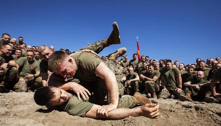 | Keywords: Life's a Beach (8545661648).jpg Marines assigned to Battalion Landing Team 3rd Battalion 2nd Marine Regiment conduct a Marine Corps Martial Arts grappling session during a motivational run on Onslow Beach N C March 4 2013 BLT 3/2 the ground combat element of the 26th Marine Expeditionary Unit conducted the run to generate esprit de corps and enhance unit cohesion before embarking on their deployment this month U S Marine Corps photo by Cpl Christopher Q Stone https //www flickr com/photos/marine_corps/8545661648/ Life's a Beach 2013-03-04 11 53 https //www flickr com/people/40927340 N03 Marines from Arlington VA United States PD-USGov United States Marine Corps Official Page https //flickr com/photos/40927340 N03/8545661648 2016-09-03 22 33 24 United States Government Work Motivation Onslow Beach Marine Corps Base Camp Lejeune |
