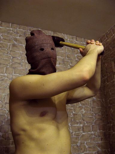 | Keywords: Lift arms with hammer against.jpg  The last day of vandal Man in mask lift arms with the hammer Последний день вандала Человек в маске замахивается молотом Own 2007-05-09 User AKA_MBG/Info AKA MBG 120px left thumb Art version Standing men Male toplessness People using hammers |