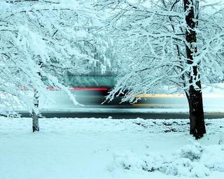 Keywords: light beams headlights tail lights rays speeding car blur winter
