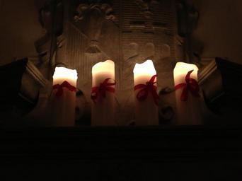 Keywords: light candle wax candles advent fourth sunday of advent christmas fireplace garland red tape
