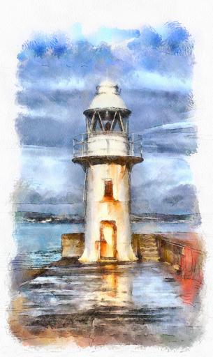 Keywords: light house brixham sea breakwater harbour light lighthouse torbay shipping harbor town watercolour