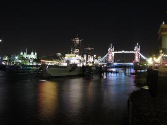 Keywords: light reflections thames night london united kingdom great britain hms belfast naval vessel tower bridge bridge light reflections illumination tower of london castle