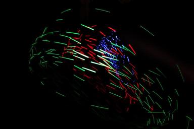 | Keywords: black background This picture was taken with an 10 second exposure and an ISO of 100. It is 3 flashing LEDs being spun at an angle. This picture was taken with an 10 second exposure and an ISO of 100. It is 3 flashing LEDs being spun at an angle. |