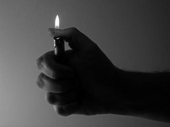 Keywords: lighter flame hand keep thumb light burn kindle black white