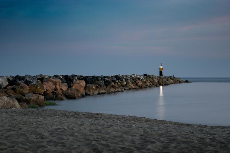 Keywords: lighthouse beach sea costa holiday horizon dusk long exposition sky