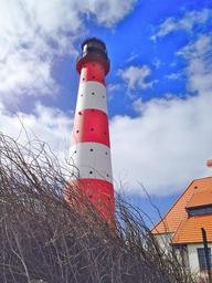 Keywords: lighthouse color red white light sky blue home