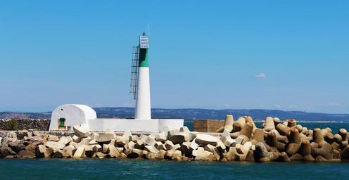 Keywords: lighthouse green lighthouse sea port electric headlight dam