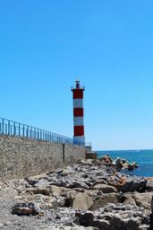 Keywords: lighthouse red lighthouse sea dam reefs electric headlight