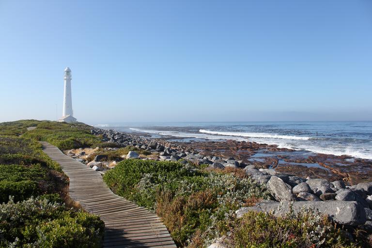 Keywords: lighthouse rocks boulevard sea water blue sky beacon
