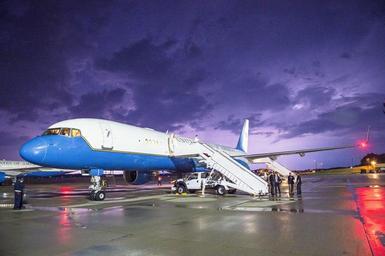 | Keywords: Lightning illuminates violet skies over Andrews 150518-D-HU462-023.jpg en Lightning illuminates the sky behind a military C-32A Boeing 757 parked on Joint Base Andrews Md May 18 2015 The C-32A belongs to the United States Air Force's 89th Airlift Wing which provides global Special Air Mission SAM airlift logistics aerial port and communications for the president vice president combat commanders senior leaders and the global mobility system as tasked by the White House chief of staff of the Air Force and Air Mobility Command DOD photo by Army Staff Sgt Sean K Harp/Released 2015-05-18 Sean Harp https //www dvidshub net/image/1950317 150518-D-HU462-023 2015-05-22 13 03 ANDREWS AIR FORCE BASE MD US PD-USGov Joint Base Andrews Naval Air Facility Images from DoD uploaded by Fæ |