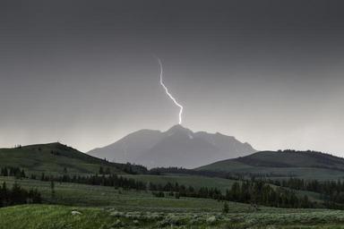 Keywords: lightning thunderstorm storm weather clouds nature rain strike mountain electricity dark sunset dusk twilight evening power shock striking yellowstone national park wyoming usa america