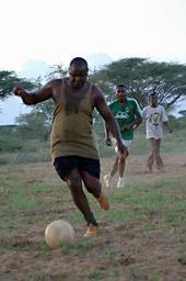 | Keywords: Like Coming Home DVIDS87230.jpg en Petty Officer 3rd Class Jack Ndaiga center assigned to Naval Mobile Construction Battalion 74 plays soccer with villagers in Sankuri Kenya April 22 NMCB 74 Seabees are drilling several water wells in the region as part of a Combined Joint Task Force-Horn of Africa project to provide clean drinking water and strengthen ties between U S and Kenya Ndaiga who lived in Nairobi Kenya until he as 21 years old joined the Navy shortly after moving to the United States When not conducting camp maintenance he helps bridge the language gap between the deployed Seabees and the villagers here 2008-04-22 Petty Officer 2nd Class John Hulle https //www dvidshub net/image/87230 080422-N-+++++-508 2008-05-07 13 57 SANKURI KE PD-USGov-Military-Navy Combined Joint Task Force - Horn of Africa Images from DoD uploaded by Fæ |