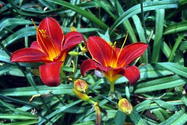 Keywords: lilies red flowers lily flowering plants ornamental green long leaves floral blossoms blooms blooming fleurs flora decorative gardening gardens two pair couple bright colorful tiger lily
