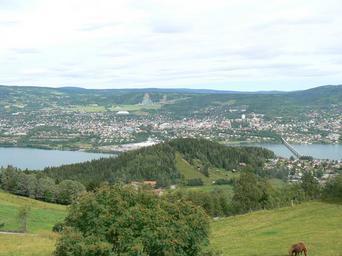 Keywords: Lillehammerutsikt fra Vingnessida 2.JPG en View over Lillehammer town Norway from across the valley Own Skvattram 2008-07- 22 Vingnesbrua Lillehammer