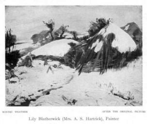 | Keywords: Lily Blatherwick - Wintry Weather.jpg en 1905 print after page of Women painters of the world from the time of Caterina Vigri 1413-1463 to Rosa Bonheur and the present day by Walter Shaw Sparrow The Art and Life Library Hodder Stoughton 27 Paternoster Row London 1905 http //www gutenberg org/files/39000/39000-h/39000-h htm Creator Lily Blatherwick other versions PD-old-70-1923 Lily Blatherwick Women Painters of the World | ||||