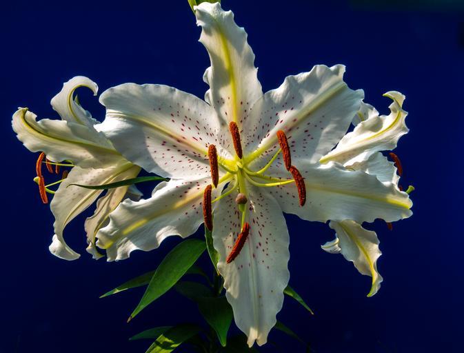 Keywords: lily blossom bloom flower white purple dots blossomed