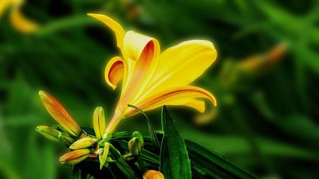Keywords: lily flower blossom garden flower floral yellow sunshine golden outdoor vibrant close-up light sunlight spring summer happy joyous comfortable bright