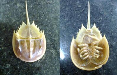 Keywords: Límulo do mar.jpeg Imagem do invertebrado Límulo do mar Vista dorsal a esquerda e vista ventral a direita 22/04/2013 Brasília Brasil 2013-11-26 own assumed Hudyoks Limulus polyphemus
