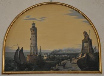| Keywords: Lindau Hafen c1870.jpg Hafen Lindau; Gemälde im Konzertsaal von Schloss Montfort in Langenargen own own photograph 2011-06 ~ 1870 anonymous Paintings in Schloss Montfort Langenargen Lindau Harbor History of Lindau Bodensee Lake Constance in art Photos by User AndreasPraefcke |