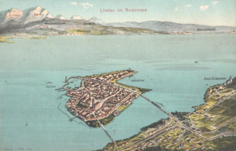 | Keywords: Lindau im Bodensee Eugen Felle.jpg  Lindau im Bodensee scan of a postcard at http //www ansichtskartenversand com/ by 1934 Creator Eugen Felle PD-old Eugen Felle Felle Lindau Bird's-eye view postcards Felle Lindau History of Lindau Bodensee Road bridges in Bavaria Causeways in Germany |