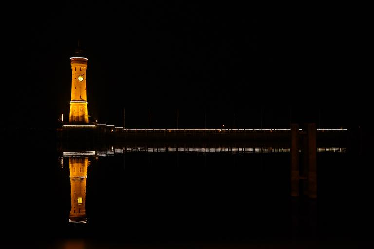 Keywords: lindau port lighthouse lake constance lake water allgäu bavaria night illuminated germany historically island swabia holiday tourism places of interest beacon architecture landmark tower building bank night mood idyllic romantic shipping holiday destination promenade mood evening lighting reflection mirroring night photograph harbour entrance new lighthouse seaport