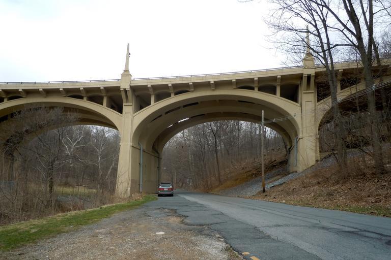 | Keywords: Lindburgh Bridge Reading PA.jpg 88000792 en Lindbergh Viaduct on the NRHP since June 22 1988 On old U S Route 422/Mineral Spring Road over Mineral Spring Creek in Reading Berks County Pennsylvania 2011-04-07 own Smallbones 40 19 52 N 75 54 0 W cc-zero Uploaded with UploadWizard Lindbergh Viaduct |