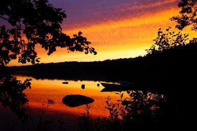 Keywords: linden lake smaland sweden waldsee boats sunset abendstimmung