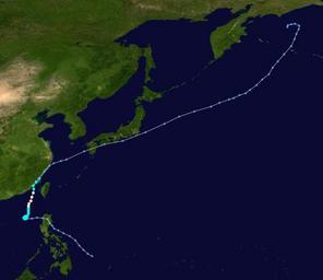 | Keywords: Linfa 2009 track.png Track map of Severe Tropical Storm Linfa of the 2009 Pacific typhoon season The points show the location of the storm at 6-hour intervals The colour represents the storm's maximum sustained wind speeds as classified in the Saffir-Simpson Hurricane Scale see below and the shape of the data points represent the nature of the storm according to the legend below User Nilfanion/Tc/T Created by Cyclonebiskit using Wikipedia WikiProject Tropical cyclones/Tracks The background image is from NASA Tracking data switch source from the National Hurricane Center <sup>http //www nhc noaa gov/pastall shtml</sup> from the Central Pacific Hurricane Center <sup>http //www prh noaa gov/cphc/summaries/</sup> from the Joint Typhoon Warning Center <sup>https //metocph nmci navy mil/jtwc/best_tracks/</sup> from the Japan Meteorological Agency <sup>http //www jma go jp/jma/jma-eng/jma-center/rsmc-hp-pub-eg/besttrack html</sup> from the National Hurricane Center <sup>http //www nhc noaa gov/pastall shtml and the Central Pacific Hurricane Center http //www prh noaa gov/cphc/summaries/</sup> from the Central Pacific Hurricane Center <sup>http //www prh noaa gov/cphc/summaries/ and the Joint Typhoon Warning Center https //metocph nmci navy mil/jtwc/best_tracks/</sup> from the w National Hurricane Center <sup>http //www nhc noaa gov/pastall shtml</sup> or the Joint Typhoon Warning Center <sup>https //metocph nmci navy mil/jtwc/best_tracks/</sup> June 12 - 22 2009 Cyclonebiskit 2009 Pacific typhoon season track maps Severe Tropical Storm Linfa 2009 |