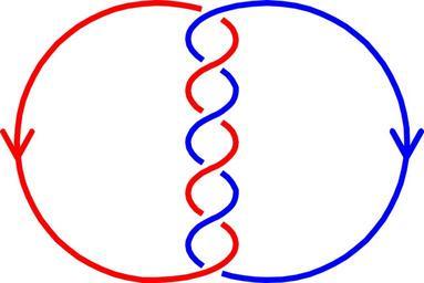 Keywords: Linking Number 3.svg Two curves with linking number 3 Topologically equivalent to star of David as two symmetrically interlaced triangles Own Jim belk 2 component links Topology diagrams Knots and links on transparent background