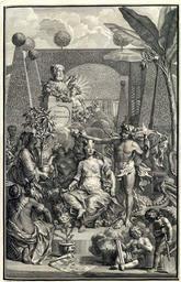 | Keywords: Linnaeus Hortus Cliffortianus frontispiece cropped.jpg en Frontispiece by Jan Wandelaar 1690-1759 of Linnaeus C 1738 Hortus Cliffortianus The plate shows Mother Earth seated on a lion and lioness holding the keys to the garden At her feet are a pot with Cliffortia and a plan of the Hartekamp garden To the left a negress brings her an Aloe from Africa an Arabian woman offers Coffea arabica from Asia and a befeathered American indian brings Hernandia from America On a pedestal is a bust possibly portraying George Clifford On the right is a banana in flower and fruit A young god Apollo with the head of Linnaeus steps forward bringing light in his left hand and with his right hand casting aside the shroud of darkness around the goddess Underfoot he tramples the dragon of falsehood a reference to the counterfeit Hydra at Hamburg exposed as a fraud by Linnaeus while on his way to Holland desription summarized from Stearn W T 1957 in Ray Society Species Plantarum A facsimile of the first edition 46 nl Frontispies door Jan Wandelaar 1690-1759 van Linnaeus C 1738 Hortus Cliffortianus De gravure toont Moeder Aarde gezeten op een leeuw en een leeuwin de sleutels tot de tuin in haar hand Aan haar voeten een pot met Cliffortia en een plattegrond van de tuin van de Hartekamp Links brengt een negerin haar een Aloe uit Afrika een Arabische vrouw biendt een plant van de Coffea arabica uit Azië aan en een gevederde indiaanse brengt Hernandia uit Amerika Op een hoog voetstuk staat een buste die mogelijk George Clifford voorstelt Aan de rechterzijde zien we een bananenplant met bloemen en vruchten en een jonge god Apollo met het hoofd van Linnaeus die in zijn linkerhand licht brengt en met zijn rechterhand de sluiers der duisternis afwerpt van de godin Met zijn voeten vertrapt hij de draak der onwaarheid een verwijzing naar de nagemaakte Hydra in Hamburg die hij op zijn reis naar Holland als bedrog had ontmaskerd beschrijving verkort naar Stearn W T 1957 in Ray Society Species Plantarum A facsimile of the first edition 46 de Frontispiz von Jan Wandelaar 1690-1759 aus Linnaeus C 1738 Hortus Cliffortianus Der Stich zeigt die Mutter Erde sitzend auf einem Löwen und einer Löwin mit dem Schlüssel des Gartens in der Hand zu ihren Füssen ein Topf mit Cliffortia und ein Plan des Gartens Zur linken Seite bringt Ihr eine Afrikanerin eine Aloe aus ihrer Heimat eine arabische Frau bietet Coffea arabica aus Asien an und eine befiederte Indianerin bringt Hernandia aus Amerika Auf einem Fussgestell steht eine Büste möglicherweise George Clifford darstellend Zur rechten Seite sehen wir eine Banane in voller Blüte und einen jungen Apollo allerdings mit dem Kopf von Linnaeus Dieser bringt in seiner linken Hand das Licht und nimmt mit seiner rechten Hand der Göttin den Schleier des Dunkels ab Mit seinen Füssen zertritt er den Drachen der Unwahrheit ein Verweis auf die Hydra von Hamburg die er unterwegs nach Holland als Fälschung entlarft hatte Beschreibung verkürzt nach Stearn W T 1957 in Ray Society Species Plantarum A facsimile of the first edition 46 fr Frontispice par Jan Wandelaar 1690-1759 de Linnaeus C 1738 Hortus Cliffortianus La gravure montre Mère Nature étant assise sur un lion et une lionne tenant les clefs du jardin dans la main à ses pieds sont un pot avec Cliffortia et un plan du jardin de Hartekamp à gauche une negresse lui apporte une Aloe d'Afrique une femme Arabe offre Coffea arabica d'Asie et une Indiene emplumé apporte Hernandia d'Amérique Sur un piédestal est un buste représentant probablement George Clifford Du côté droit est une banane en fleur et fruit et un jeune dieu Apollo à la tête de Linnaeus apportant la lumière dans la main gauche et enlèvant avec la main droit les voiles de l'obscurité de la déesse Avec les pieds il piétine le dragon de la fausseté une référence à l'hydre contrefaite à Hambourg exposée comme fraude par Linnaeus pendant qu'en route vers la Hollande desription récapitulé de Stearn W T 1957 in Ray Society Species Plantarum A facsimile of the first edition 46 Scan from copy in Real JardÃn Botánico - Madrid Linnaeus C 1707-1778 1738 PD-old-100 200px<br /> Wandelaar Linnaeus Hortus thermometer jpg Courtesy of Real JardÃn Botánico - Madrid http //bibdigital rjb csic es/ing/index php Hortus Cliffortianus Jan Wandelaar Cliffortia |