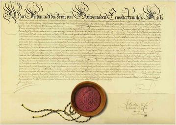 | Keywords: Linzer-Diplom.jpg en The Linzer Diplom in which emperor Ferdinand III confirmed in the year 1646 the imperial immediacy of city of Bremen Germany de Das Linzer Diplom in dem Kaiser Ferdinand III im Jahr 1646 die Reichsunmittelbarkeit der Stadt Bremen bestÃĪtigt Staatsarchiv Bremen Photo taken by the Staatsarchiv Bremen / Document written by emperor Ferdinand III 1646-06-01 PermissionOTRS 2010021510032585 15 Feb 2010 Guandalug Law of Bremen Legal history of Germany 1646 documents Staatsarchiv Bremen History of Linz Ferdinand III Holy Roman Emperor Thirty Years War 1646 1646 in Bremen PD-old-100 |