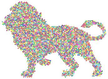 Keywords: lion animal big cat feline king of the jungle wild africa dots circles colorful prismatic rainbow abstract geometric art