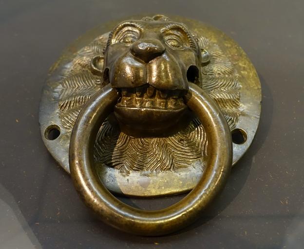 Keywords: Lion head door puller from the Church of St. Lambertus in Erkelenz, Lower Rhine Valley, 1250-1300, bronze - Museum Schnütgen - Cologne, Germany - DSC00309.jpg en Lion head door puller from the Church of St Lambertus in Erkelenz Lower Rhine Valley 1250-1300 bronze - in the collection of the Museum Schnütgen Exhibited in the Rautenstrauch-Joest-Museum - Cologne Germany 2015-11-29 09 44 15 own Daderot other versions PD-old-100 cc-zero Metalwork in Museum Schnütgen Lion heads as doorknobs St Lambertus Erkelenz |