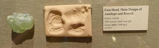 | Keywords: Lion head stamp seal with main design of Antelope and Branch, Tell Asmar, bird vase pit, Uruk, 4000-3100 BC, green calcite - Oriental Institute Museum, University of Chicago - DSC07206.JPG en Exhibit in the Oriental Institute Museum University of Chicago Chicago Illinois USA This work is old enough so that it is in the public domain Photography was permitted in the museum without restriction 2014-08-22 14 48 45 own Daderot other versions cc-zero Uruk Period stamp seals in the Oriental Institute Museum Uploaded with UploadWizard Eshnunna |