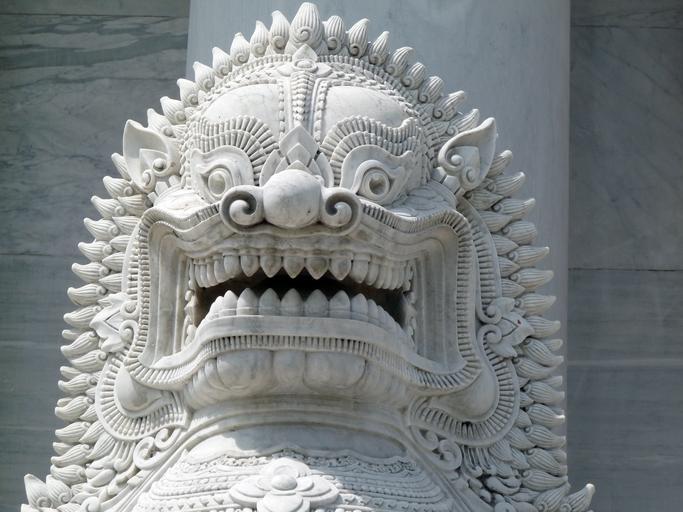 Keywords: lion head temple guardian thailand lion sculpture temple complex